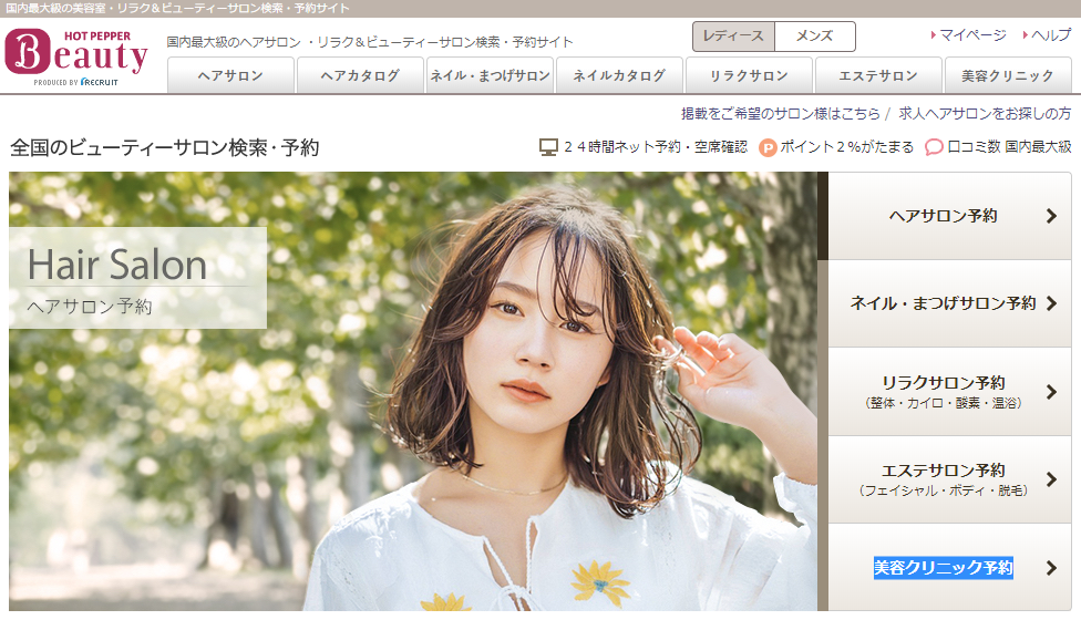 ヘアサロンの予約サイトとしては、国内最大級のホットペッパービューティー!